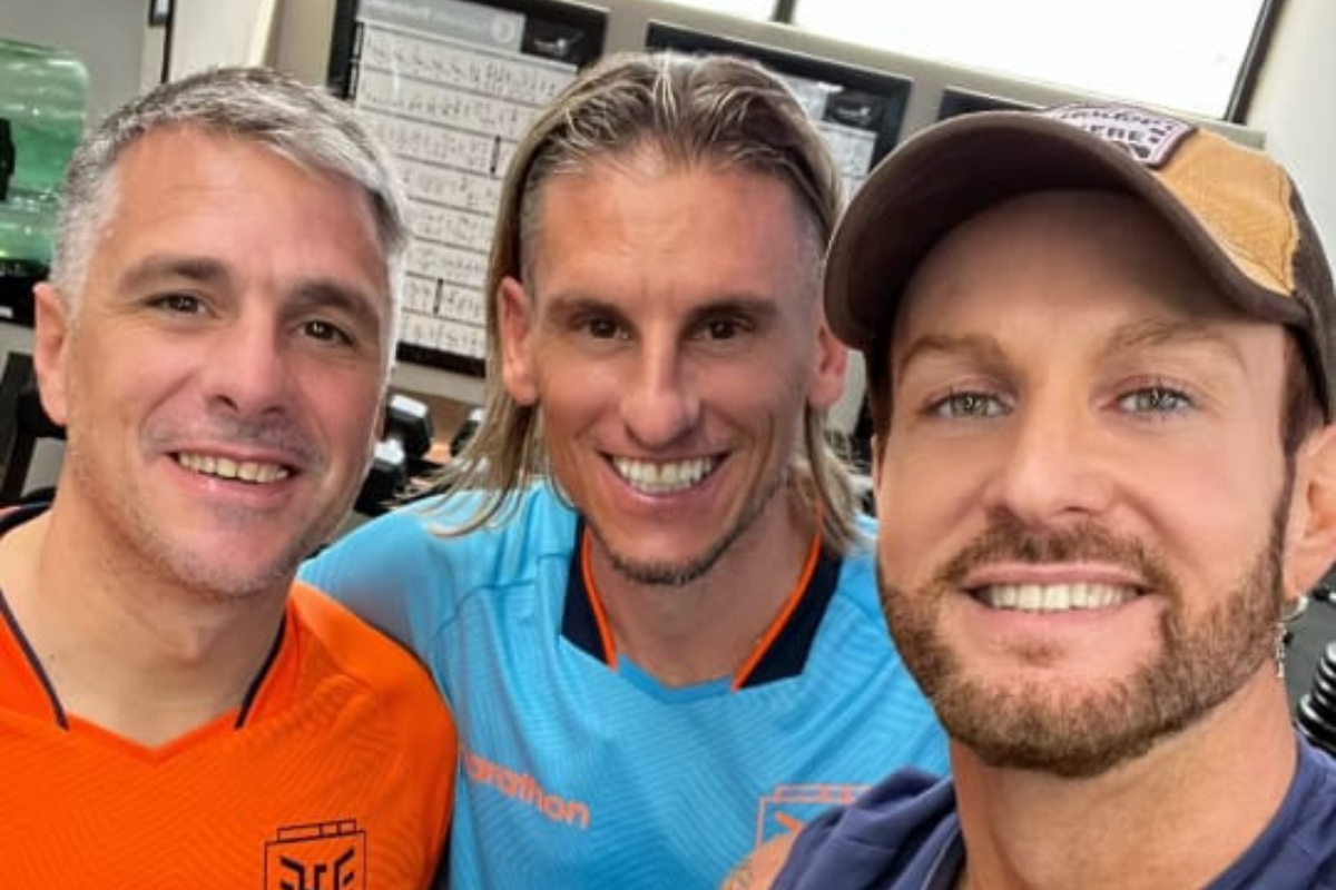 El artista expresó su emoción con estas palabras: “Hoy se entrenó con el flamante técnico y el técnico ayudante de la selección de Ecuador”.