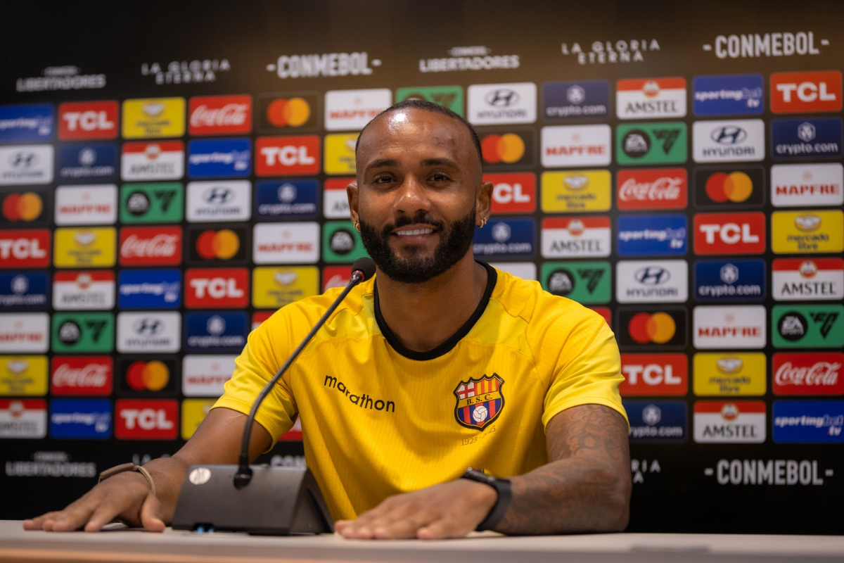 En rueda de prensa, el mediocampista brasileño habló sobre el momento que vive en Barcelona SC.