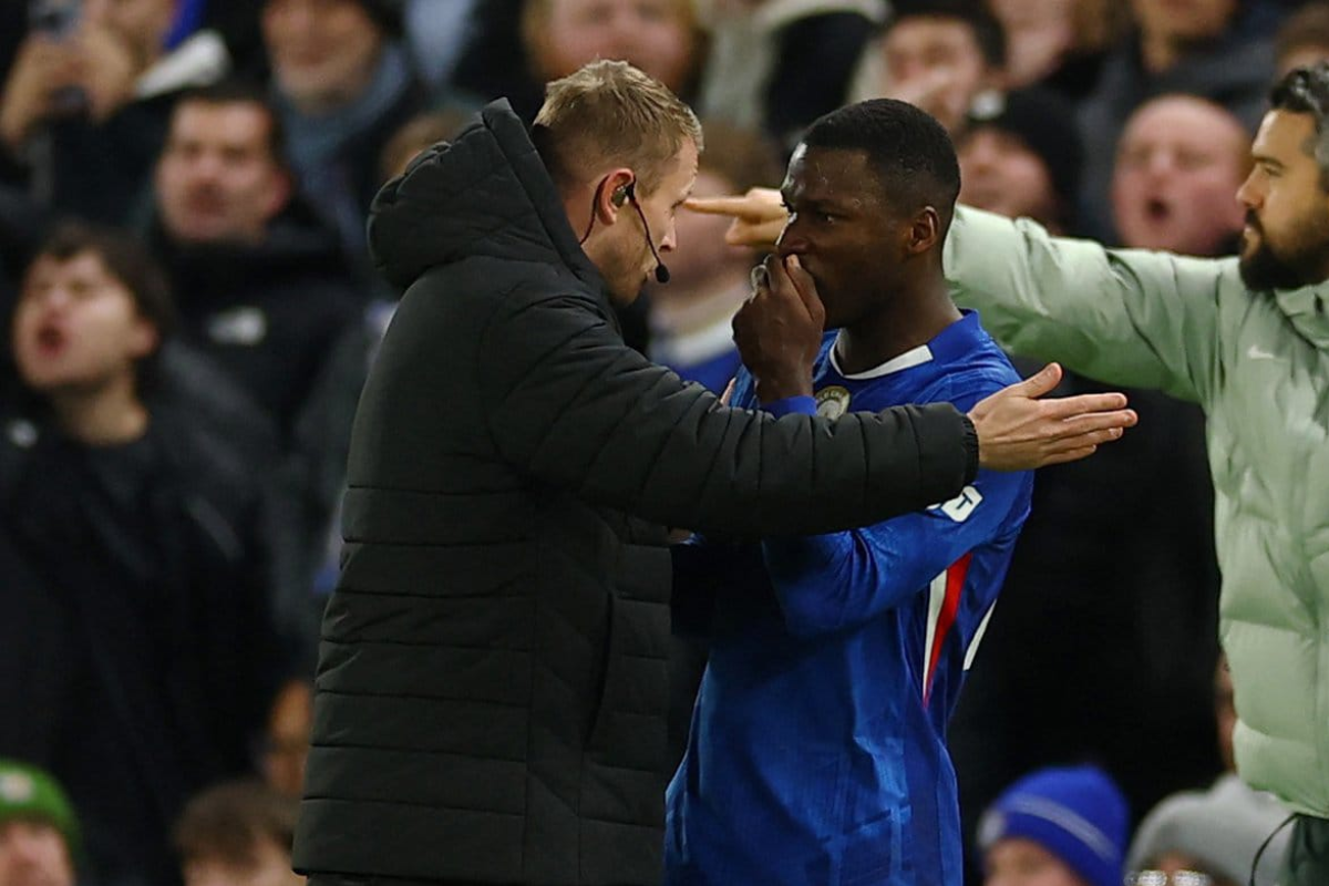 El equipo de Enzo Maresca sufrió un duro golpe en el minuto 37. Moisés Caicedo fue expulsado tras una fuerte entrada sobre Mikel Merino.