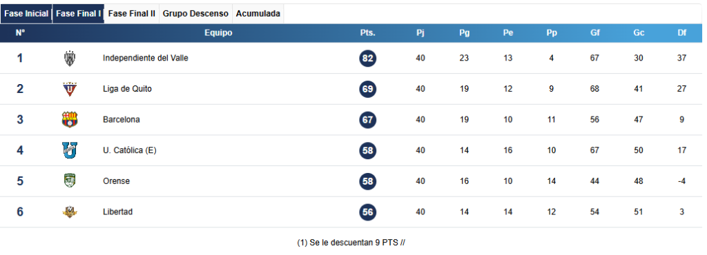 El triunfo de Liga de Quito de 2-0 sobre la Universidad Católica y el del Independiente del Valle sobre Barcelona SC, 1-0, cerró la última fecha del campeonato ecuatoriano de la LigaPro 2025.