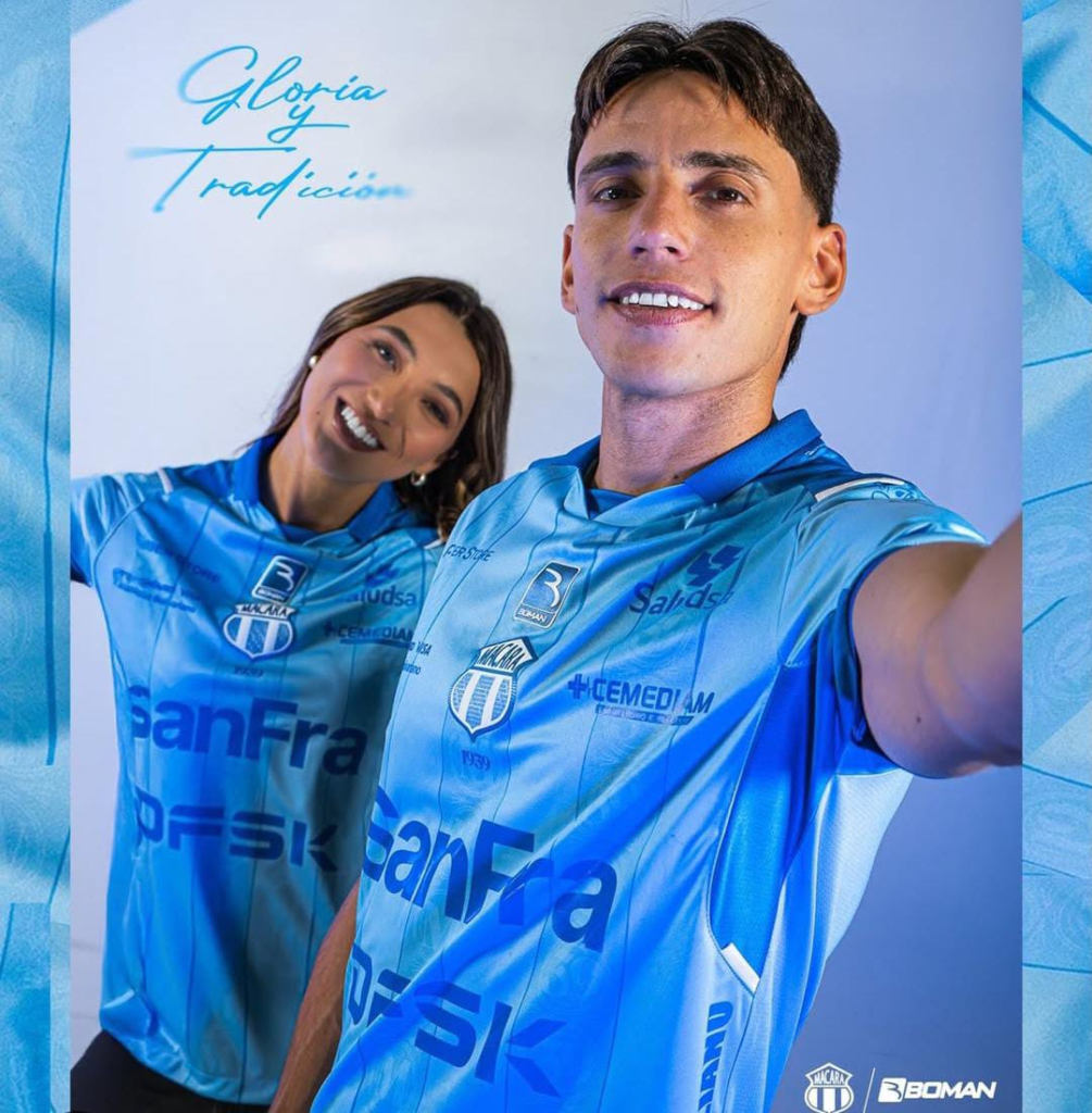 El cuadro manabita luce su primera camiseta con el tradicional color azul celeste con detalles en blanco y la segunda camiseta es color rojo con detalles en negro.