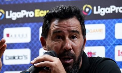 Pablo Sánchez, entrenador de LDU, se quejó de la terna arbitral que dirigió el compromiso entre Delfín y los albos.