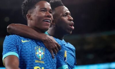 Endrick celebra el gol con Vinícius Júnior, que le dio el triunfo a Brasil sobre Inglaterra. El amistoso de la fecha...