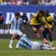 Jeremy Sarmiento, en el partido de la Selección de Ecuador ante Argentina, en Chicago. Félix Sánchez hará cambios.