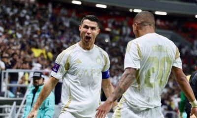 Cristiano Ronaldo anotó dos goles, uno de ellos de volea, para que Al Nassr venza 2 a 1 al Al Riyadh,...